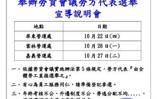 公告南區分公司臺中營運處、南投營運處及雲林營運處105年勞資會議勞方代表選舉抽籤
