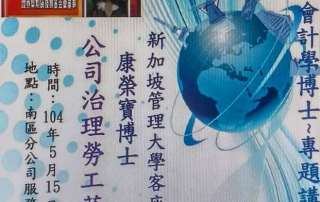 紐約大學會濟學博士 康榮寶教授 專題演講 2015.05.15