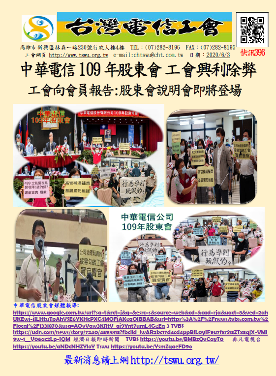 快訊396-台灣電信工會向會員報告 即將登場 請拭目以待!