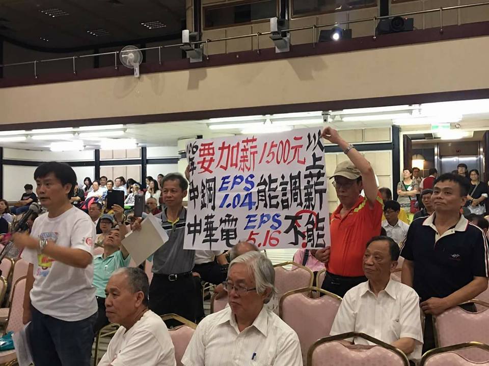 中華105年股東會張緒中反對中華電信公司未經協商把2-5%分紅降低 主張調薪案影像 2016-06-24