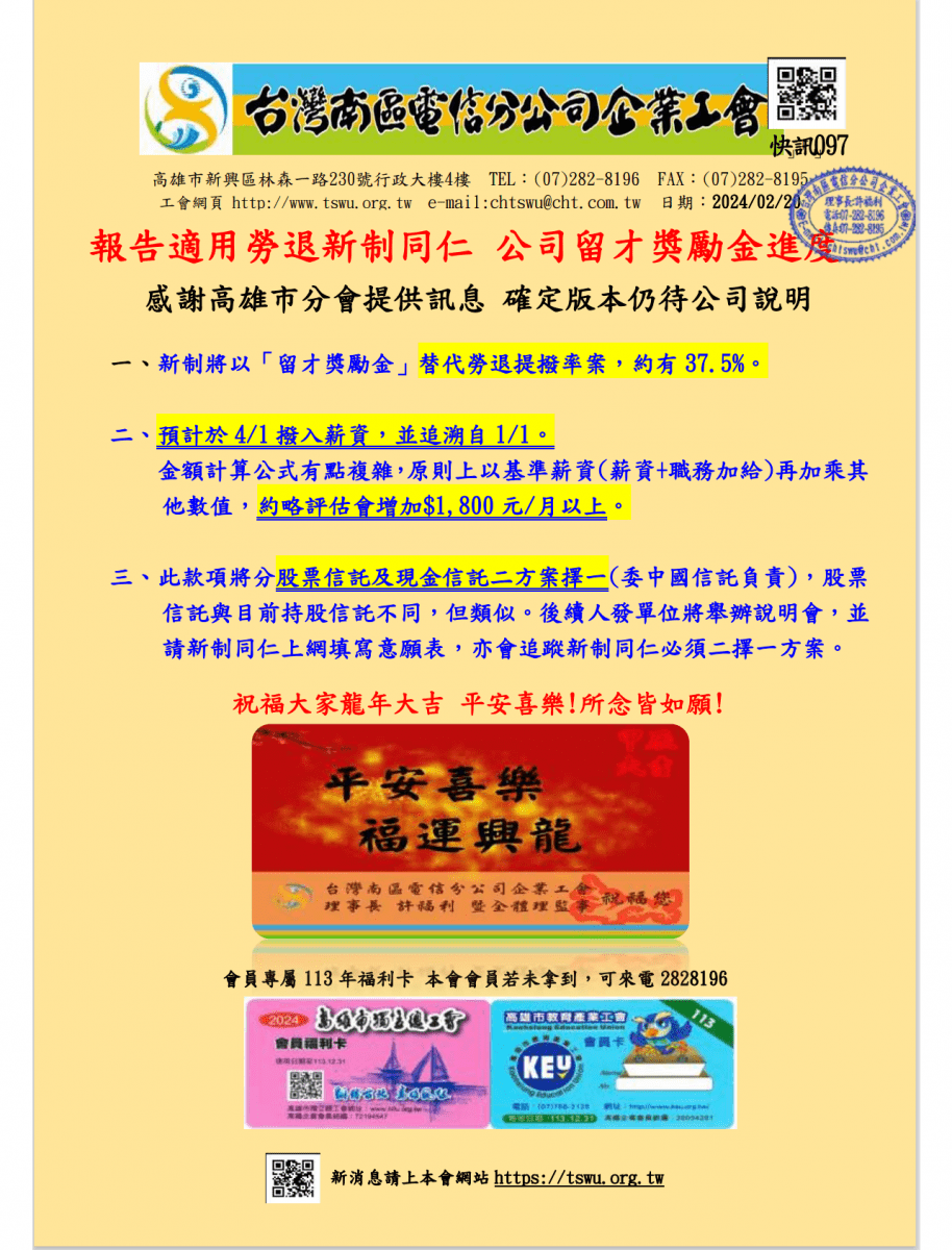 快訊097-報告勞退新制 留才獎勵金進度 恭喜適用新制同仁!