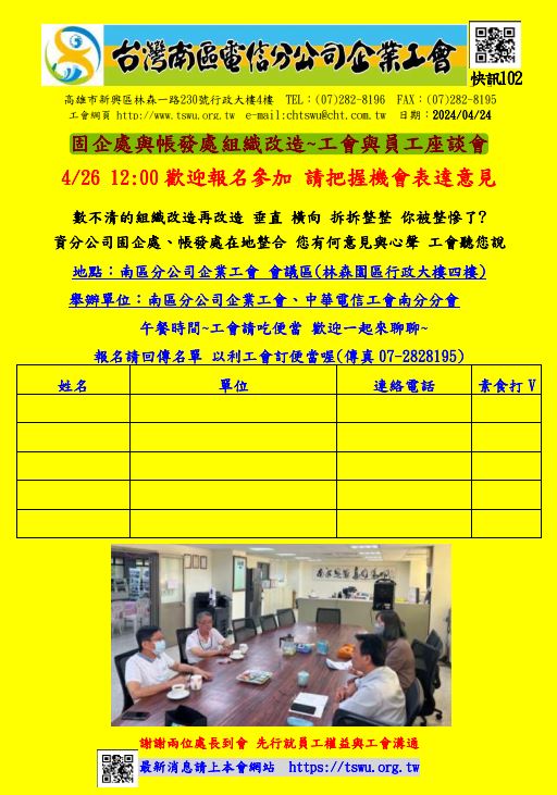 4/26固企處與帳發處組織改造~工會與員工座談會