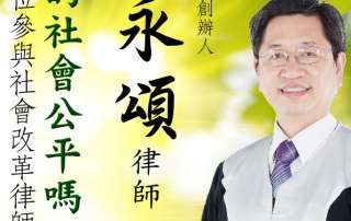熱誠歡迎林永頌律師(歡迎海報) 林永頌大律師 專題演講:弱勢勞工與司法改革